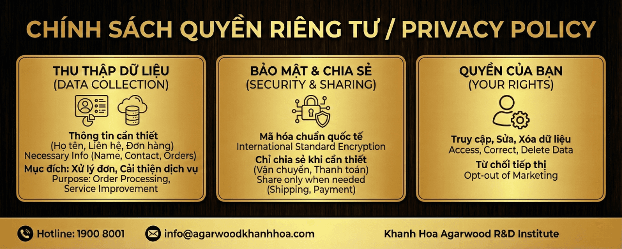 14. 联系我们 如对隐私与数据保护有任何疑问,欢迎随时联系: 越南庆和沉香研究与开发院 邮箱:info@agarwoodkhanhhoa.com 热线:1900 8001